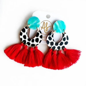 Bela - Autumn Cheetah Dot Blue Pink Red Dot-Dangle Earring