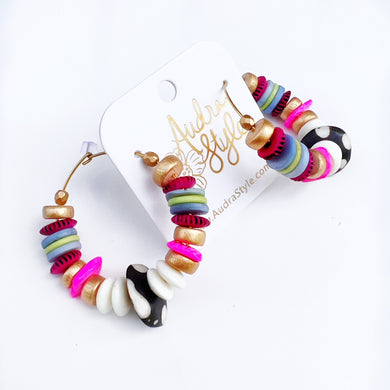 Bela - Autumn Cheetah Dot Blue Pink Red Dot-Dangle Earring