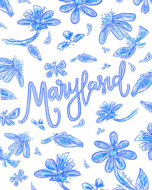Bouquet and Oranges Art Print on Paper or Canvas - Blue White Decor, Wall Poster