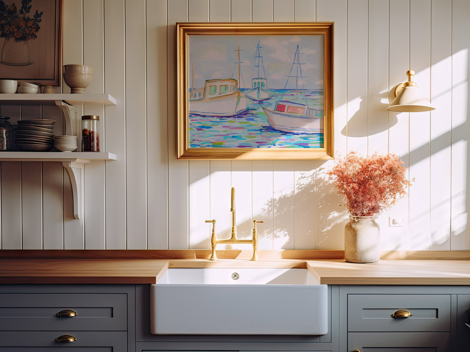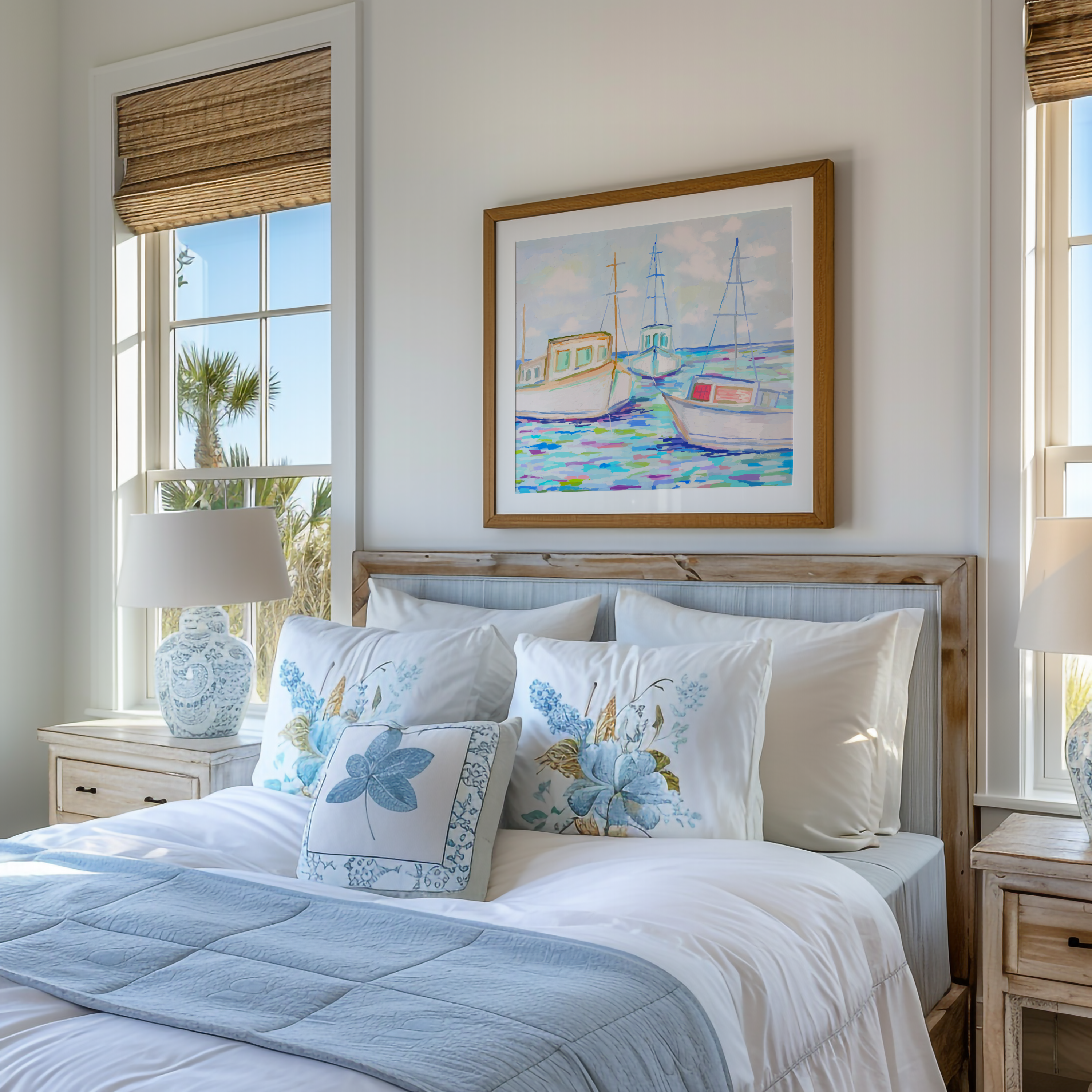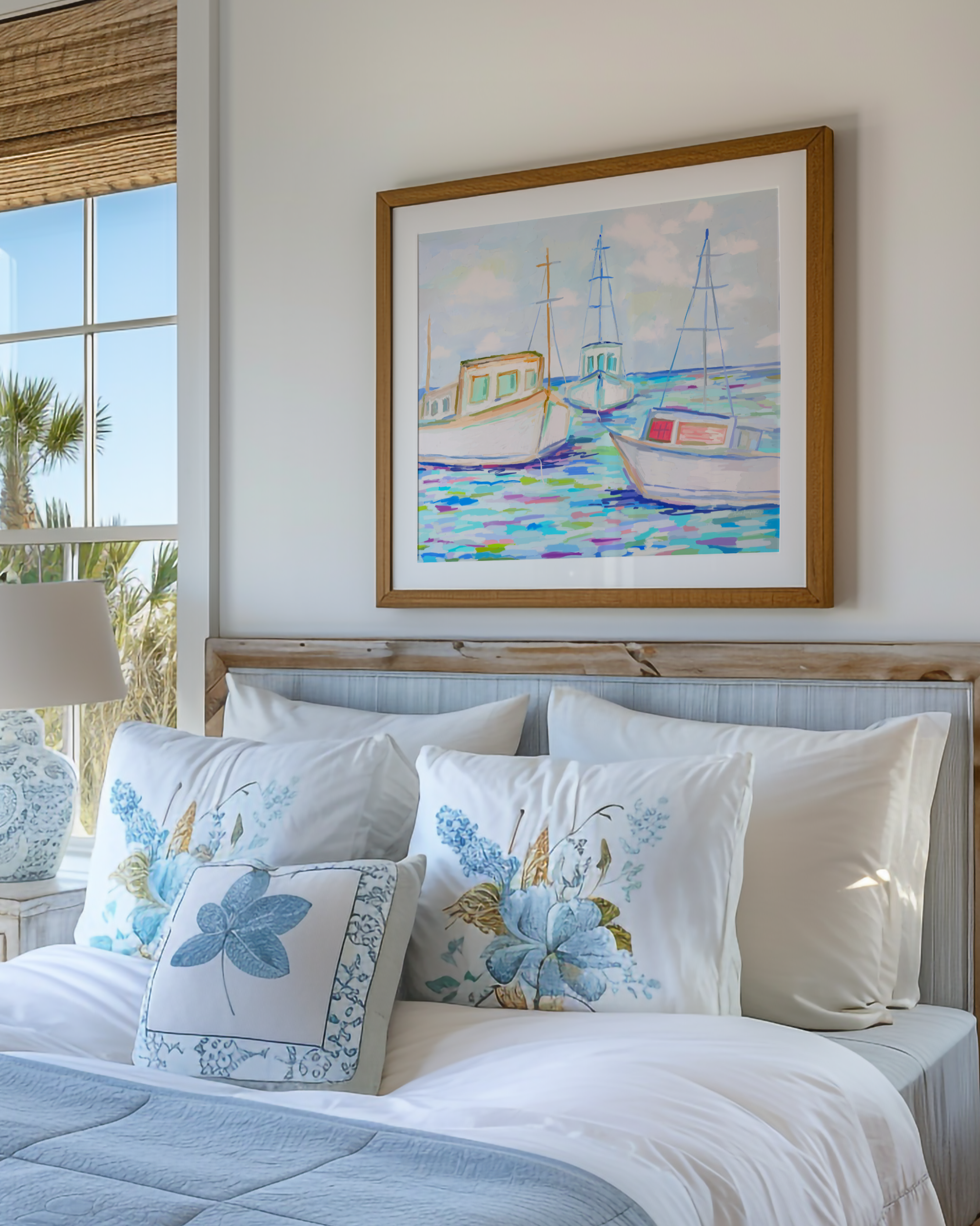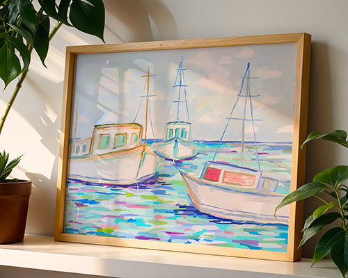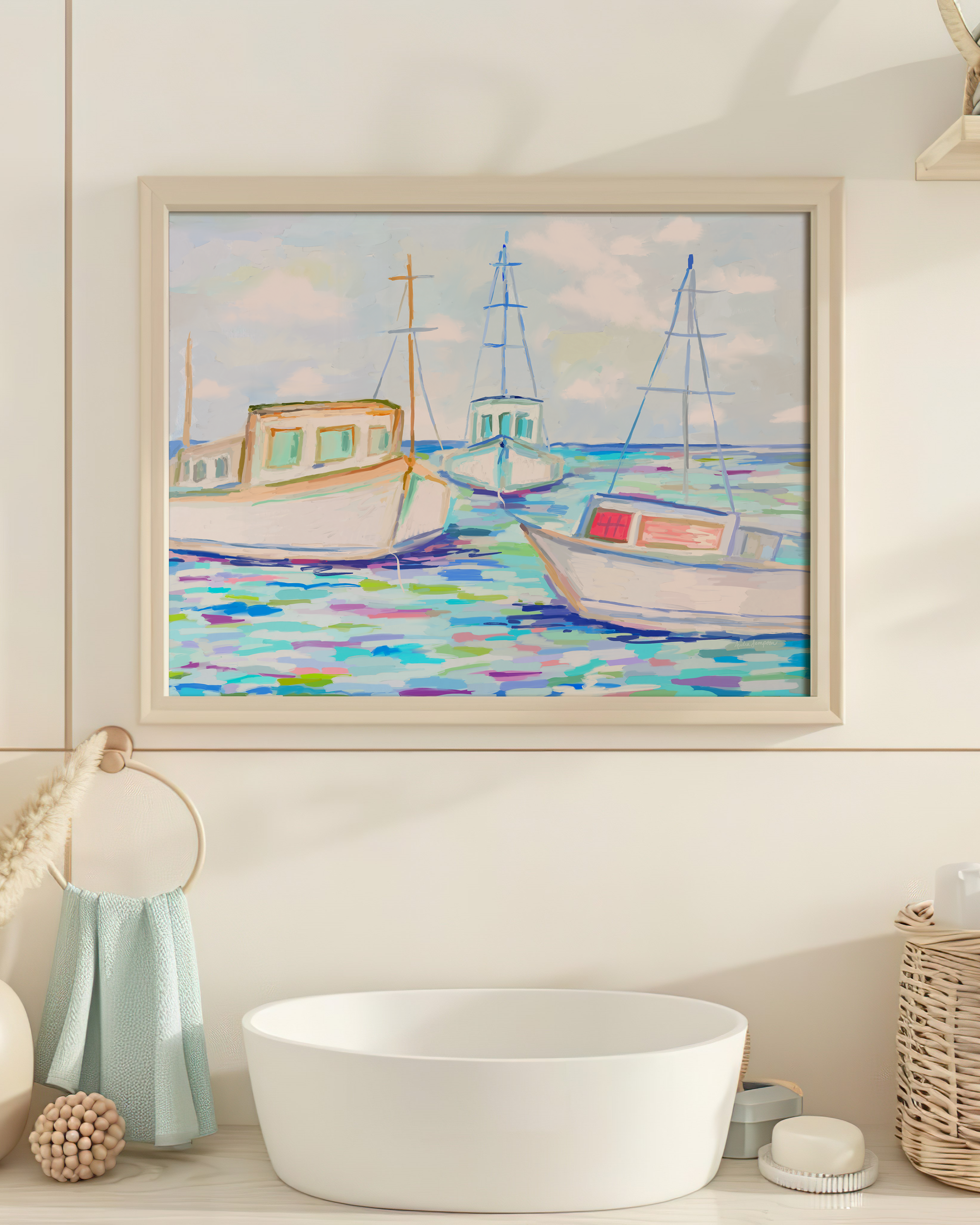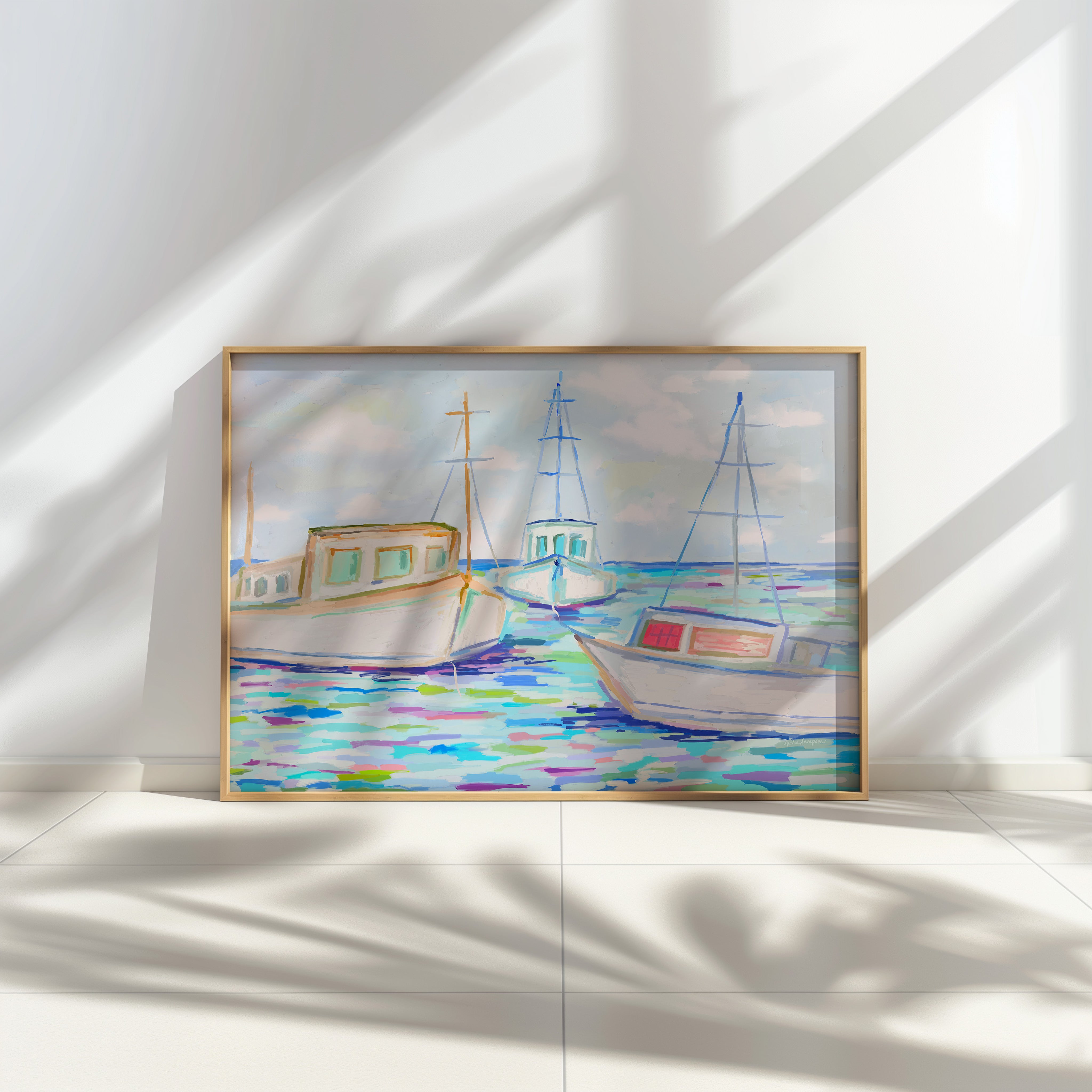 Fishing Boats Art Print on Paper or Canvas - Coastal Wall Art, Nautical Beach Decor