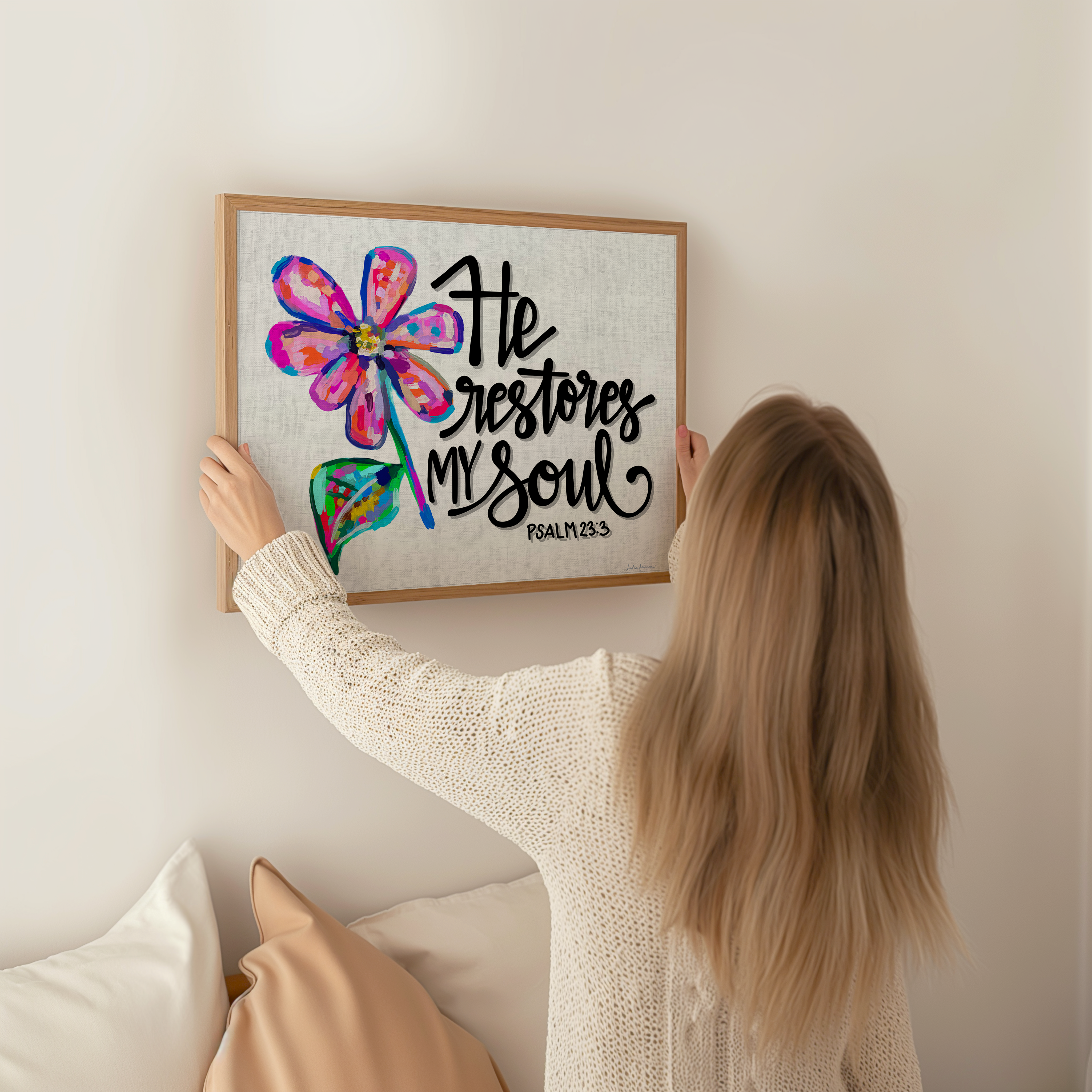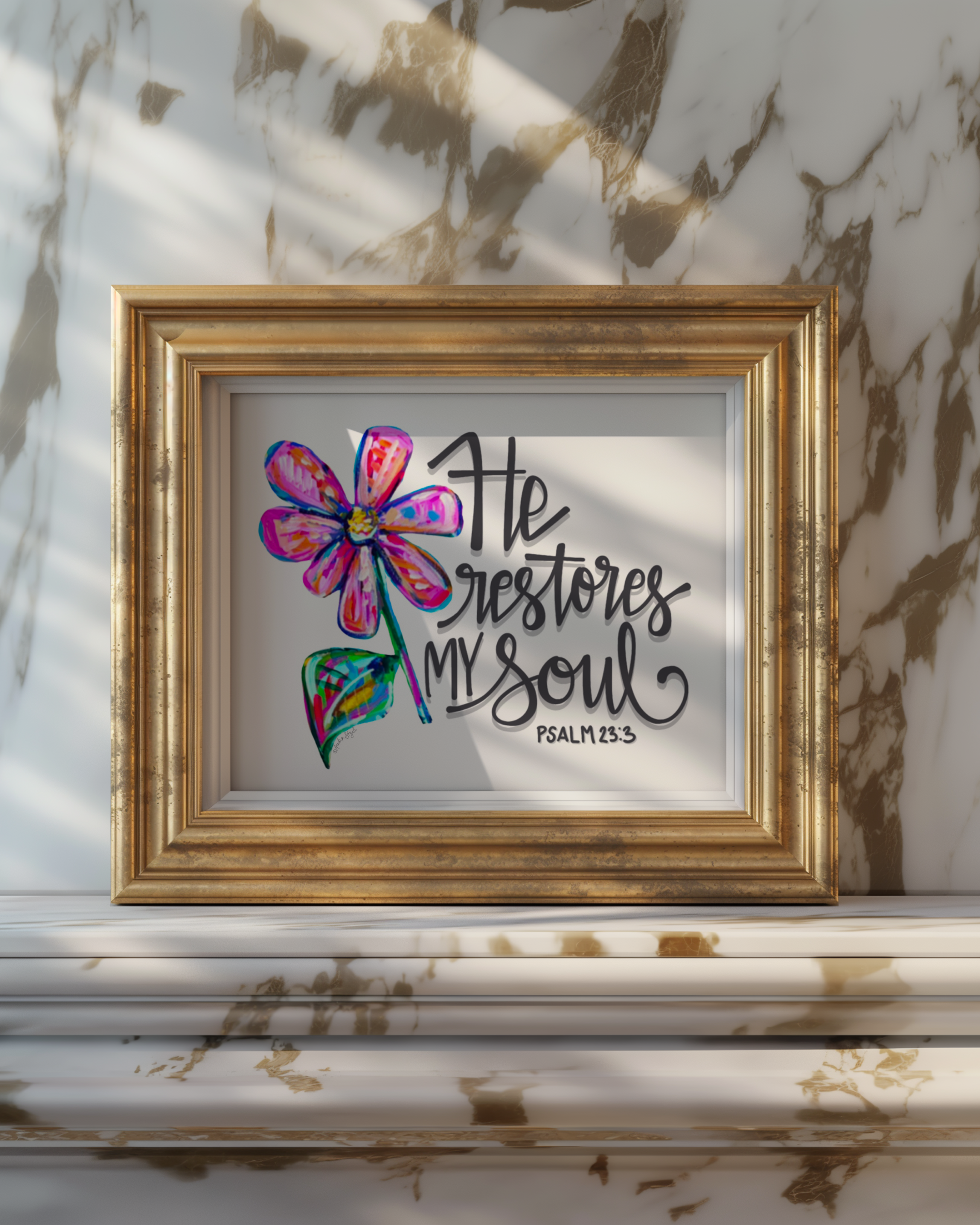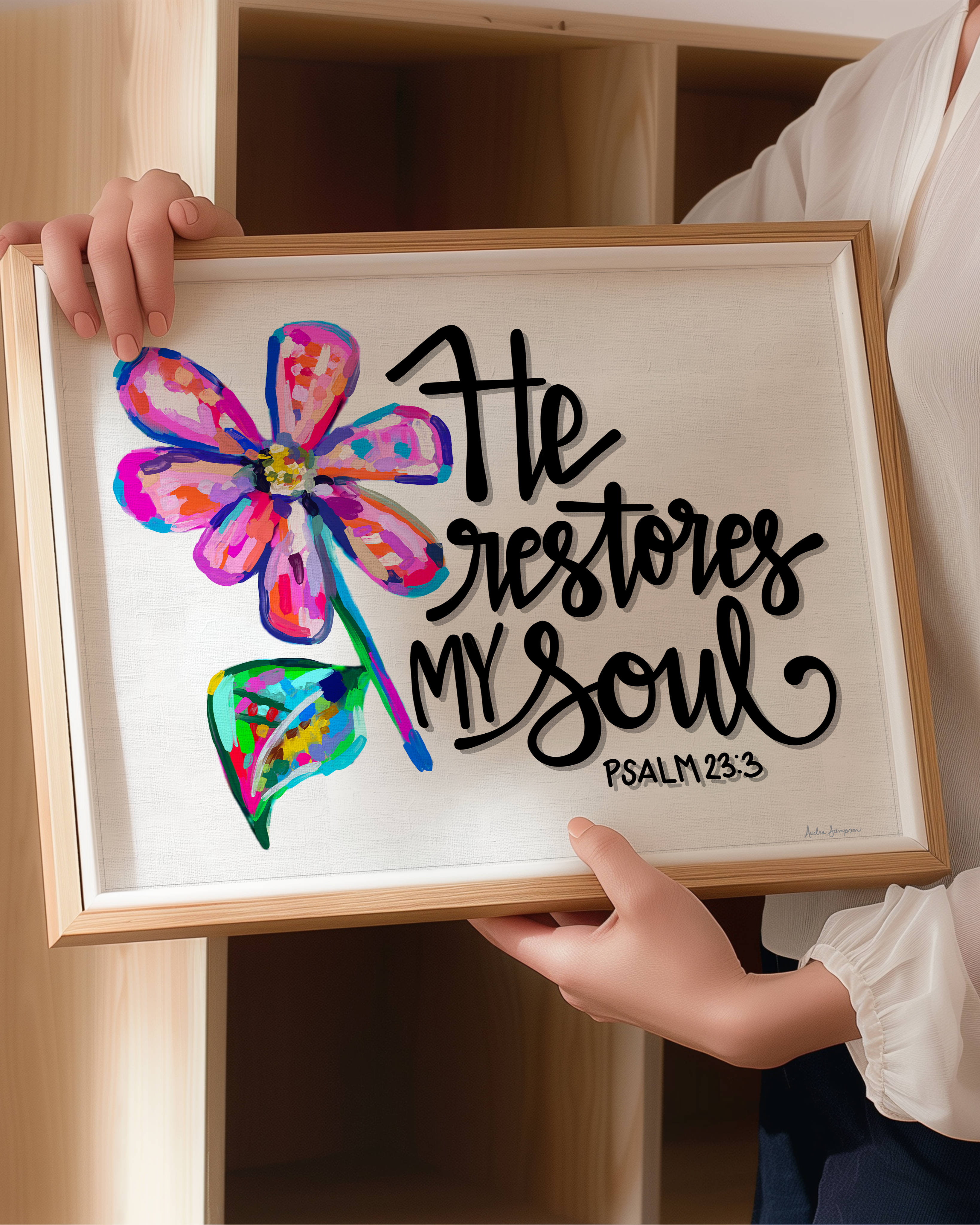 He Restores My Soul Art Print - Scripture Wall Art, Inspirational Decor, Colorful Floral Poster