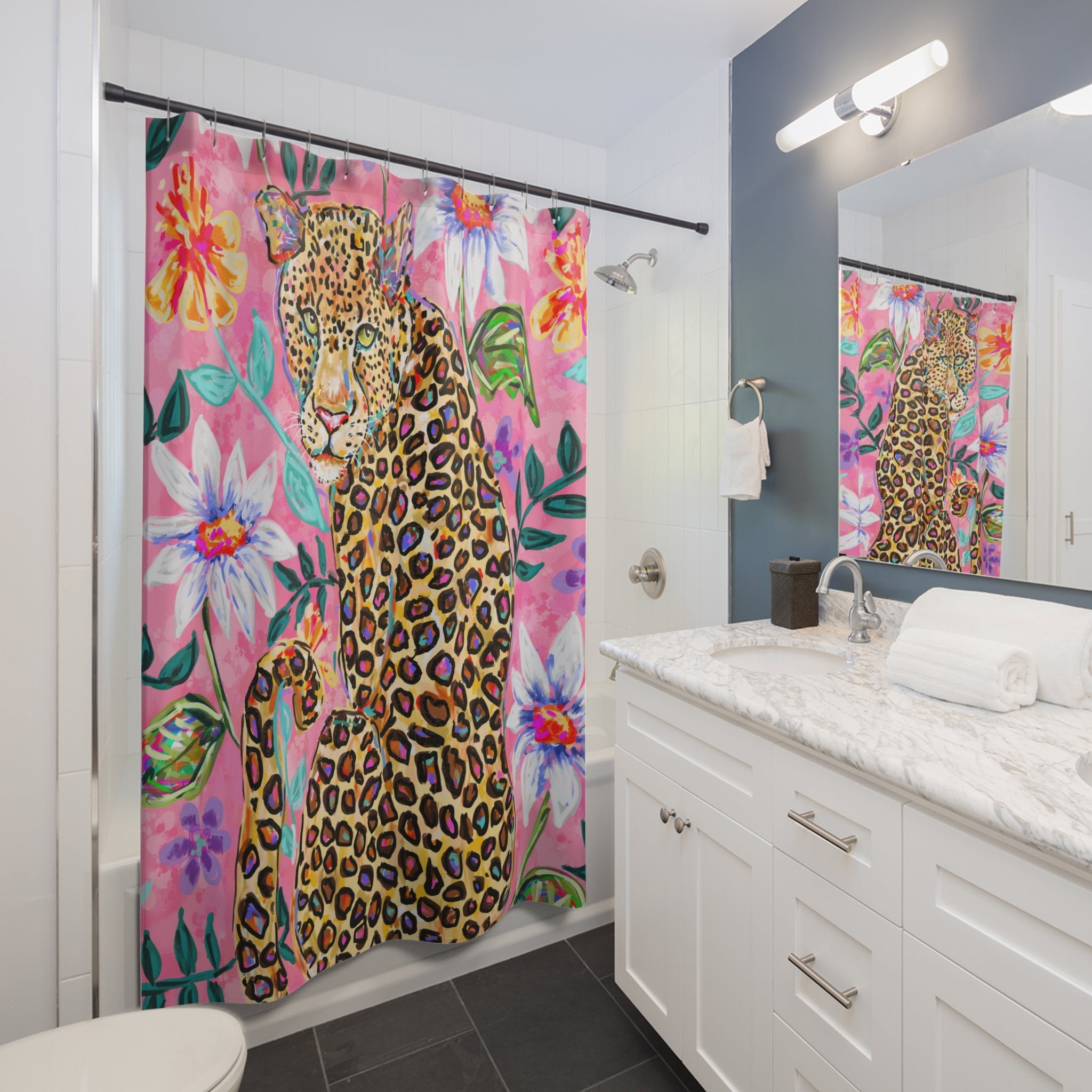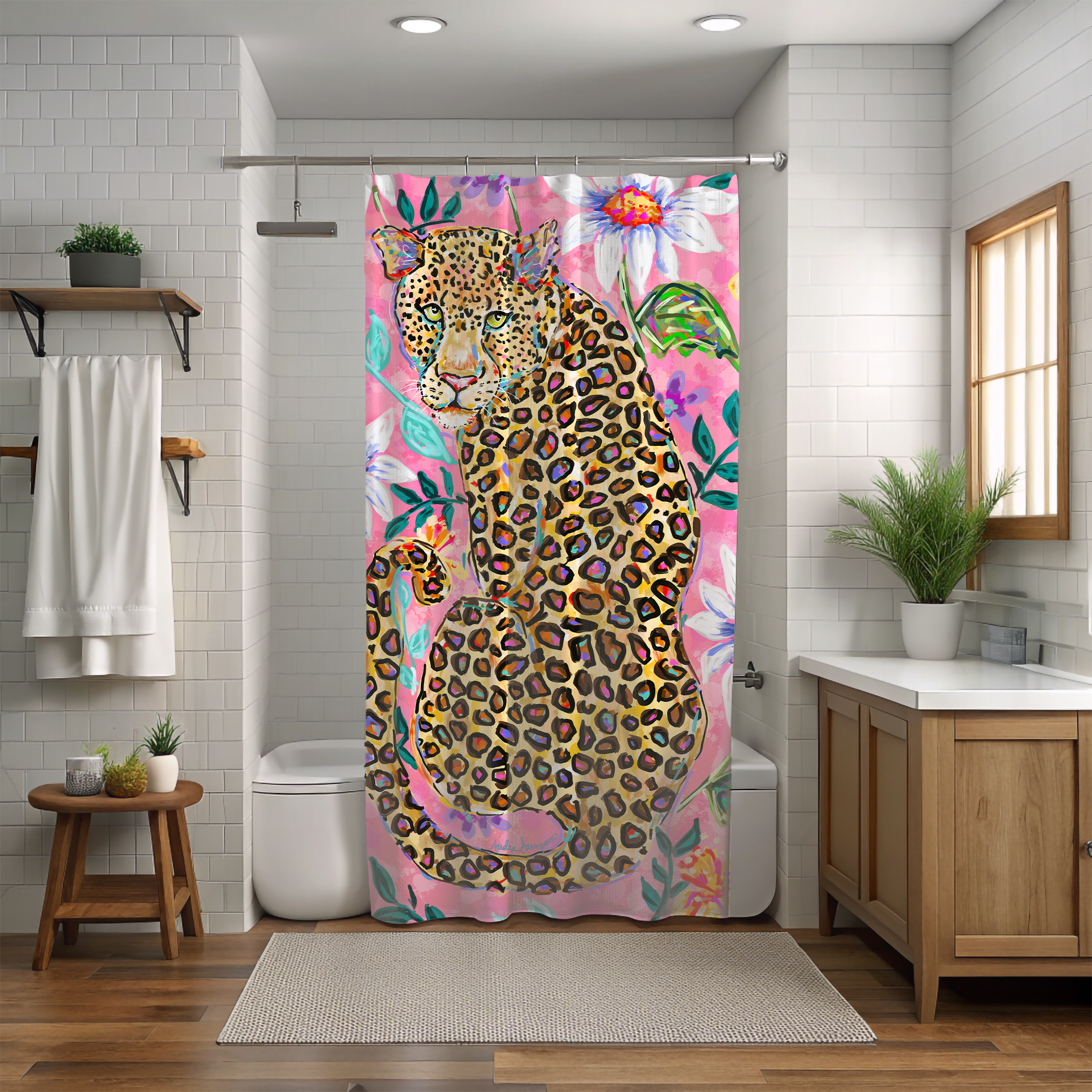 Featuring Audra's artwork, this shower curtain is here to add an original touch to any bathroom.