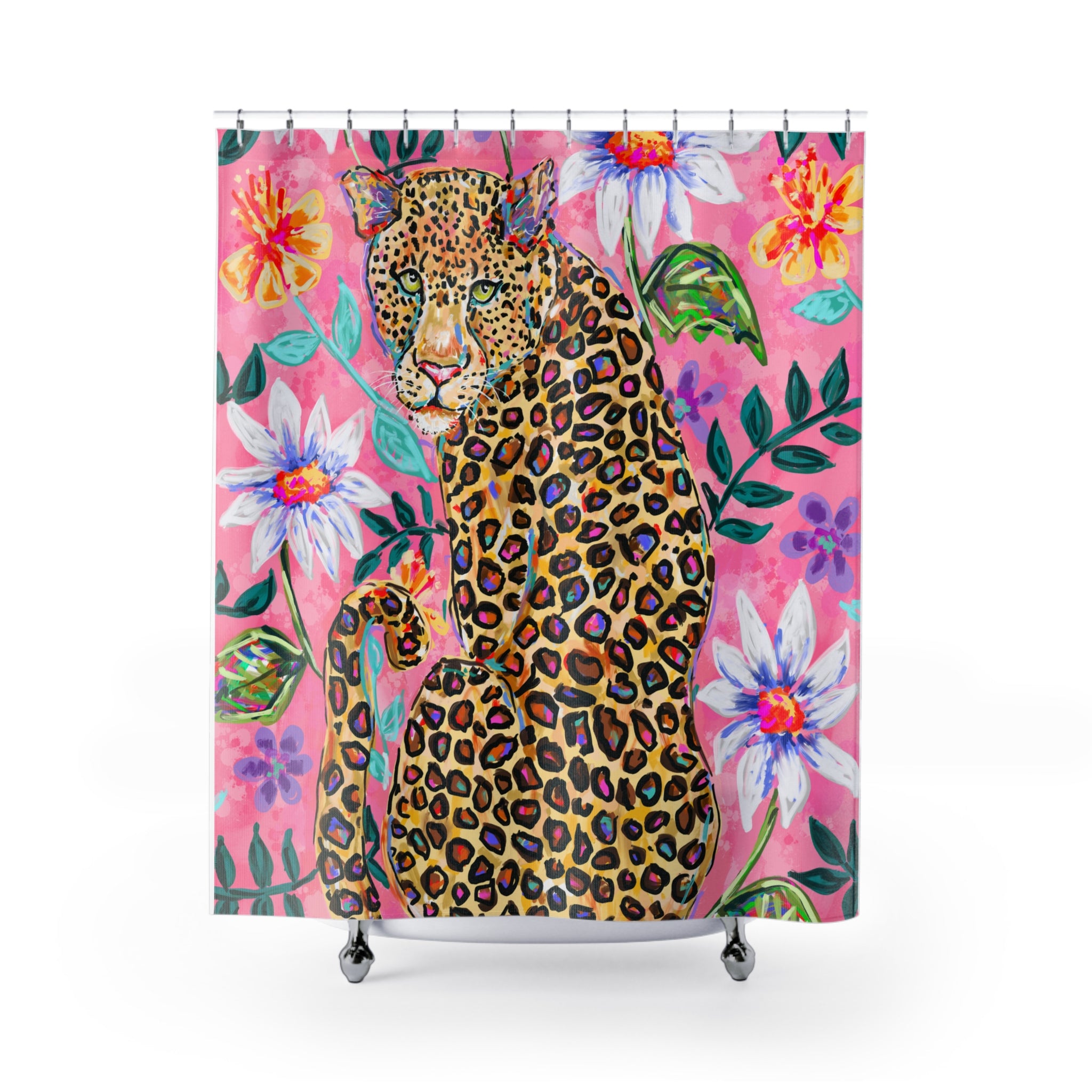 Leopard Pink Floral Shower Curtains