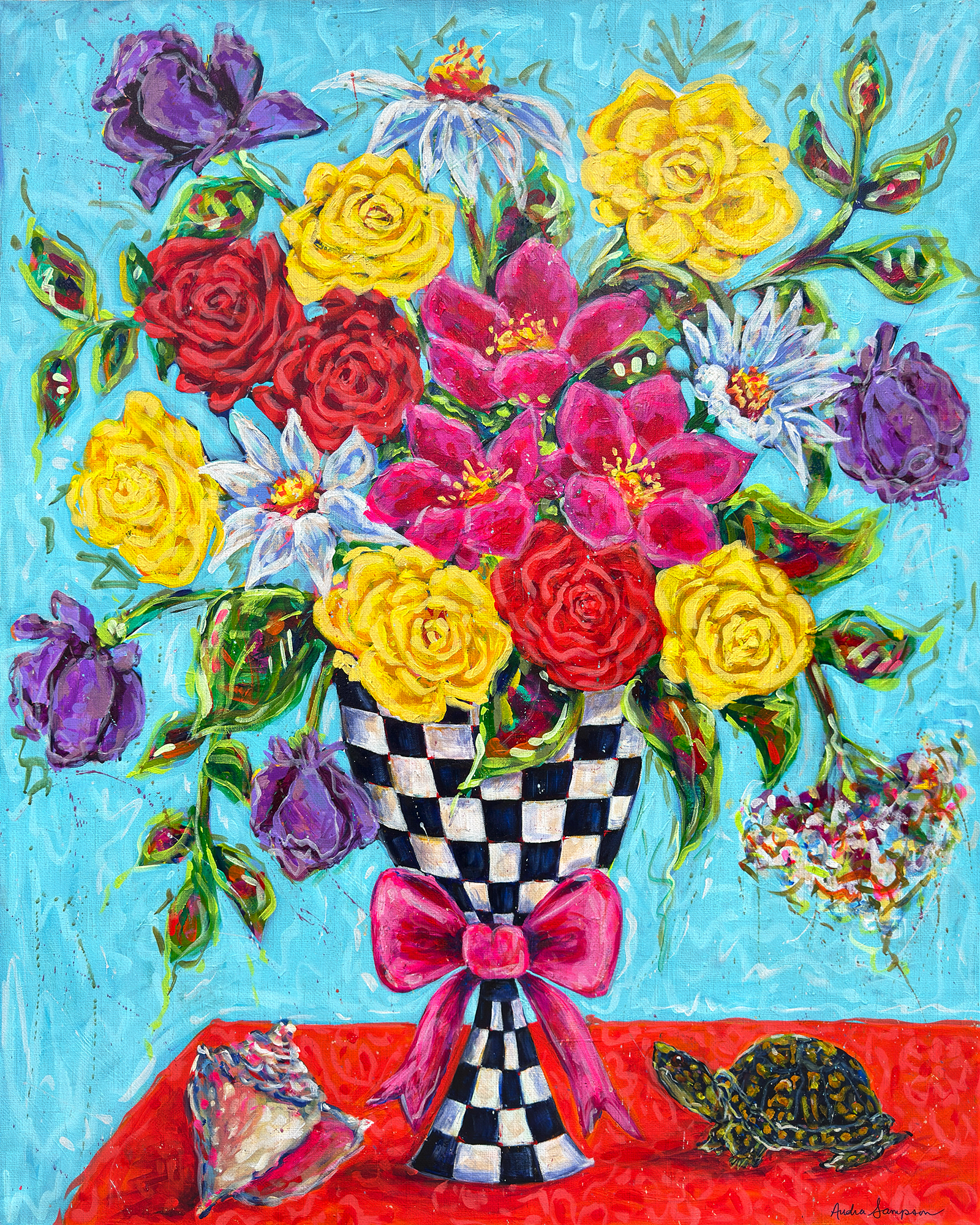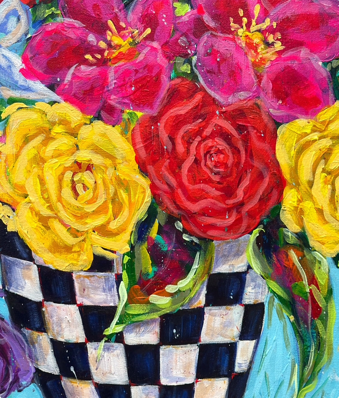 Prints and reproduction canvases of this painting can be purchased here: https://audrastyle.com/products/milk-glass-floral-art-print-on-paper-or-canvas-colorful-bouquet-decor-maximalist-art-poster