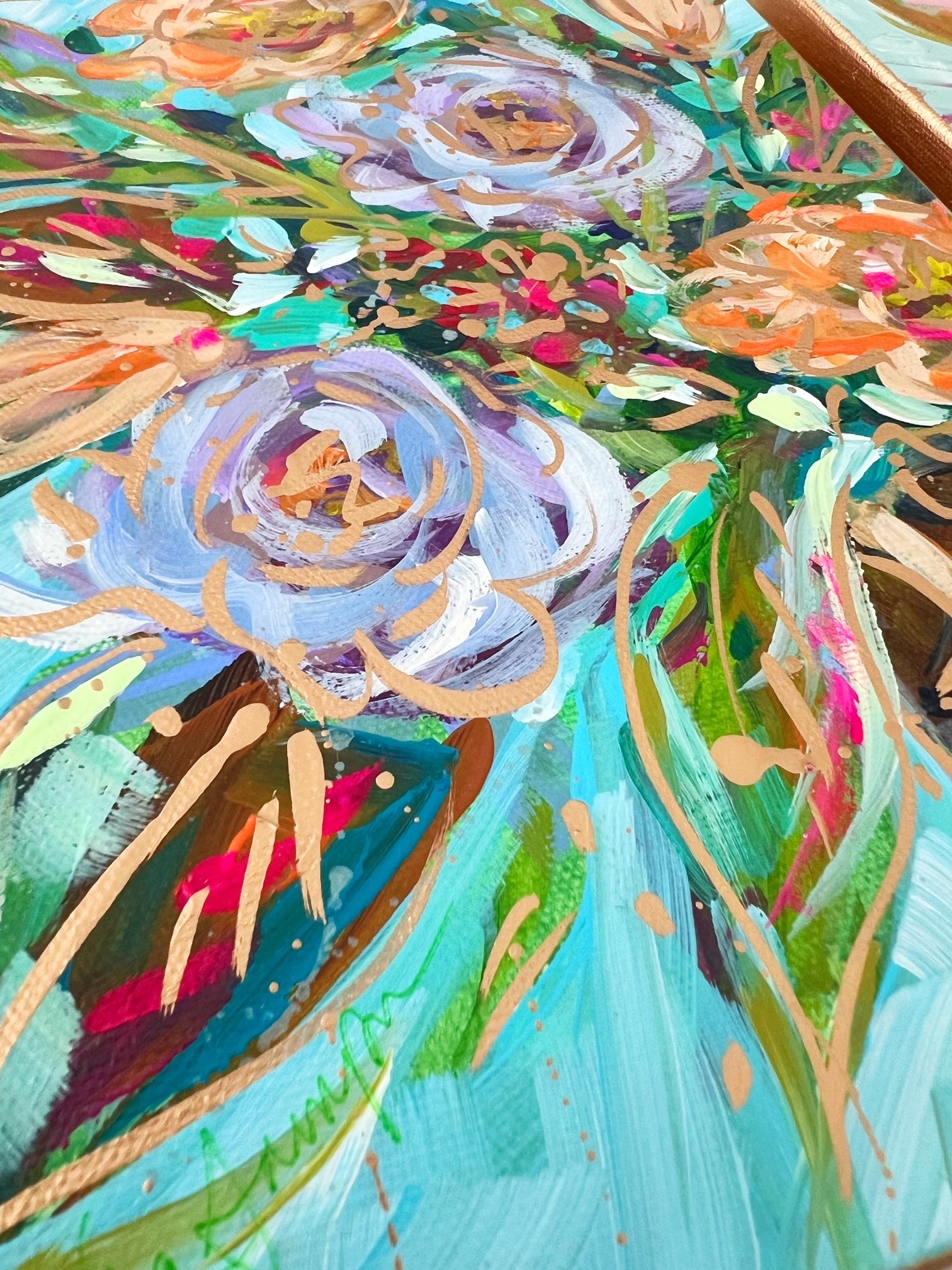 Purple and Orange Bouquet Leopard Vase 8x10" Original Painting on Canvas