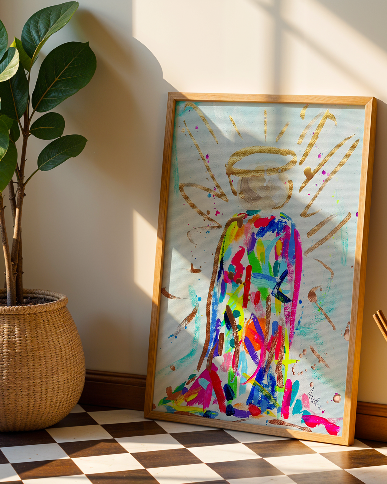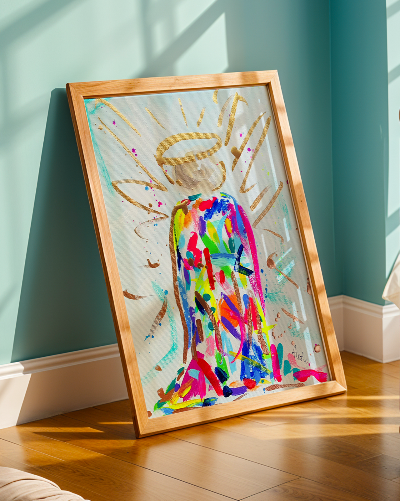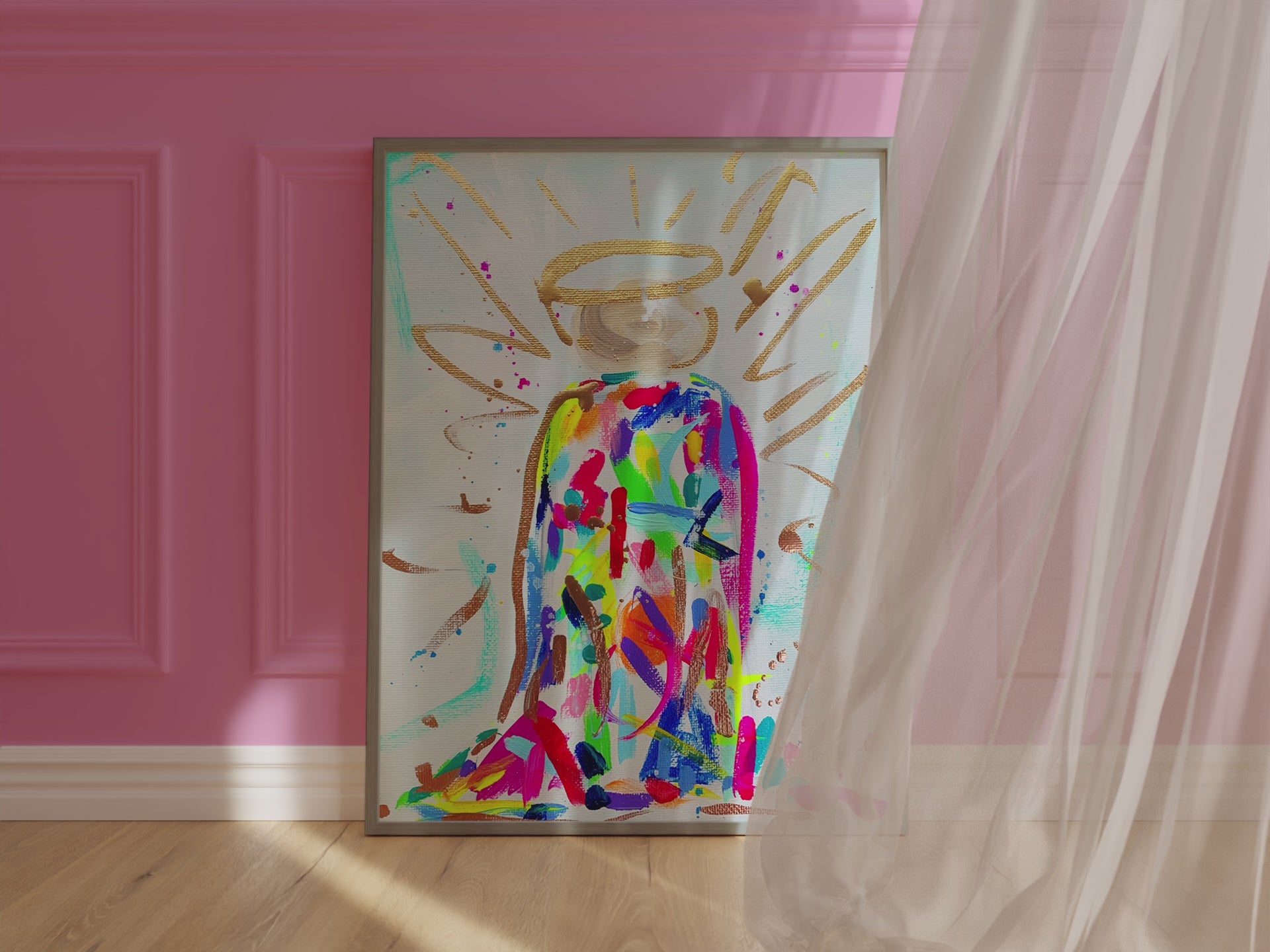 Abstract Angel Art Print on Paper or Canvas - Maximalist Decor, Colorful Wall Art Poster