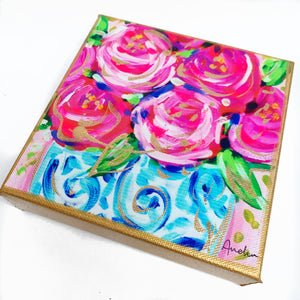 Roses Ginger Jar on 6"x6" Gallery Wrapped Canvas
